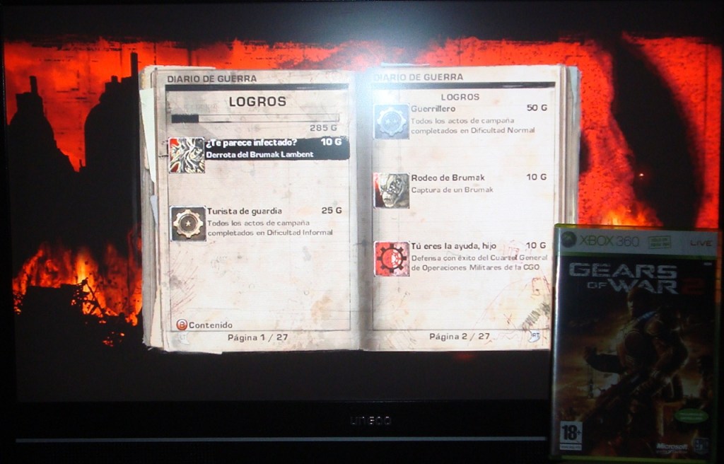 El Gears of War 2 no me ha gustado tanto como el primero, que me tuvo bastante enganchada. Al principio sí, el vicio fue el mismo, pero llegué a un jefecillo que me daba duro y que, por muchos intentos que le diera, no lograba pasarme. El juego quedó abandonado durante meses y meses (quizá como medio año xD), y hoy por fin me decidí a terminarlo. Gracias al fin de semana de Xbox Live gratuito, me animé a pedir ayuda en cooperativo para que alguien se lo pasara conmigo (por no decir que «se lo pasara por mí» mientras yo hago el patata rodando de un lado para el otro U^____^). El alma caritativa ha sido Bonoman, que el pobre ha tenido que sufrir una conexión asquerosa y mi patosidad extrema en el dichoso juego, porque encima no me acordaba de los controles ni de nada xD. Desde aquí todo mi agradecimiento infinito y mis disculpas por si en algun momento te han dado ganas de meterme el mando por la oreja («>_<)