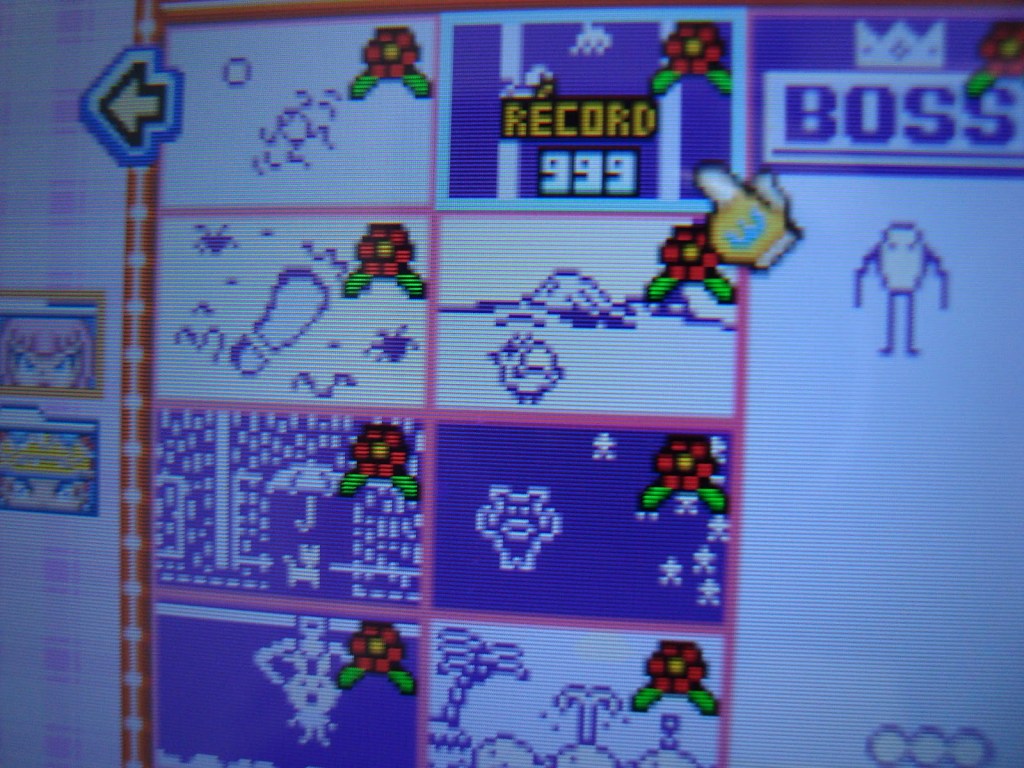 El juego tiene «dos modos». Uno es el principal, con fases que combinan minijuegos por temática, y el otro es lo que llaman la «parrilla», en que van saliendo los minijuegos que has llegado a ver en el modo principal, y que te dan un récord a batir. Aquí se juega el mismo minijuego una y otra vez, alternando los tres modos de dificultad y aumentando cada vez más la velocidad. Es mi favorito, la verdad, me lo paso bomba con el flipe que se forma cuando vas a velocidad máxima y es todo una locura xDDD. Normalmente te piden 10, 15 o 20 pasados en cada minijuego, según consideran, y entonces te sale un floriponcio encima conforme lo has logrado. Si se te da muy bien alguno, lo normal es llegar a los 40-50 (o para mí, vaya).