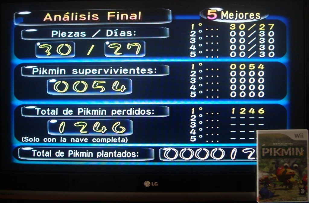 Sigo teniendo el Pikmin 2 como predilecto, pero aún así lo he pasado genial con este primero ^o^ Lo que pasa que es muy cortito, me ha durado 8 horas y media. Entre eso y que vicia un trillón, lo completé en dos tardes (literales). Lo que no ha cambiado con los años es que, aunque me encantan estos RTS de consola en que llevas tus ejércitos, no se me dan del todo bien xD. Llegué a la fase final sobrándome 8 días, pero gasté muchos de ellos porque maté a todos mis Pikmin varias veces para vencer al bicho que guarda la última pieza xD. Me los mataba -> cultivaba nuevos -> mataba más -> cultivaba más. Soy una mata-pikmin, no tengo sentimientos. Vamos, se puede comprobar en la foto de stats, que maté casi tantos como Pikmin planté, esto es grave (*゚∀゚)