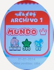 Completado: 100%. Cinco estrellas en la partida: todos los sellos, todos los banderines dorados, todas las estrellas verdes y todos los niveles pasados con los cinco personajes (^o^)b + Tres coronas de vida.