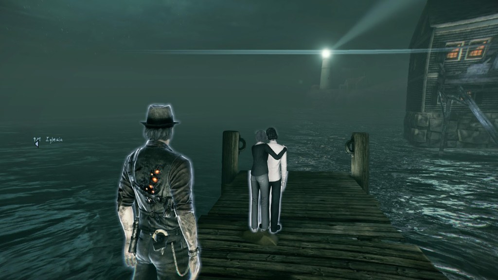 Por último, no puedo olvidarme de la ambientación. Pese a ser discretito en gráficos, Murdered cuida mucho los detalles, hasta el punto de que me hiciera gracia mirar las fotos que había en la casa de la gente, o los cuadros, o los platos por lavar en la cocina, o el jarroncito con flores, o… no sé qué es exactamente lo que hace que un juego consiga esta atención y otros no, porque gráficamente está por la media tirando hacia abajo, pero la cuestión es que así es xD. El tema de los fantasmas también está muy bien integrado, no solo en la aplicación de los conceptos espirituales como elementos jugables, sino también como parte de esta construcción de un espacio espectral superpuesto al mundo físico y tangible.