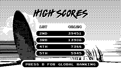 Pero este juego arcade de surf es el Wii Sports de la Playdate. Es una muy buena demostración de cómo es jugar con la palanquita y de qué posibilidades ofrece.