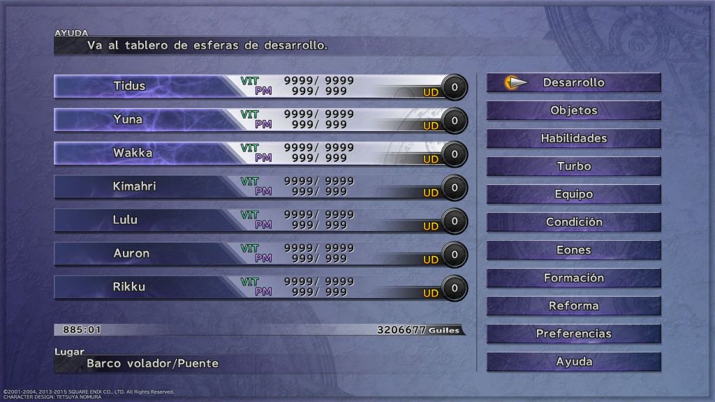 Una forma divertida que usé cuando ya solo me quedaban dos personajes (Tidus y Lulu) fue el siguiente: Como los combates llevan 3 personajes obligados, tenia a Kimahri que seguía acumulando PH. Al mismo tiempo, tenia muchas esferas amigo (permite teletransportar un personaje a la posición de otro) que seguía consiguiendo durante el grindeo. Pues bien, movía a Kimahri a las posiciones donde los otros iban a necesitar ir y así podía hacerles un teleport al lugar sin gastar PH de estos, jijiji. Esto solo funcionaba para esferas con raíles ya pintados, claro, pero me ahorró su buen par de horas 😛