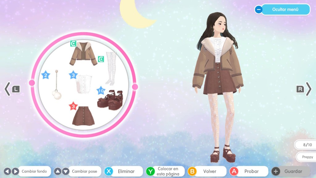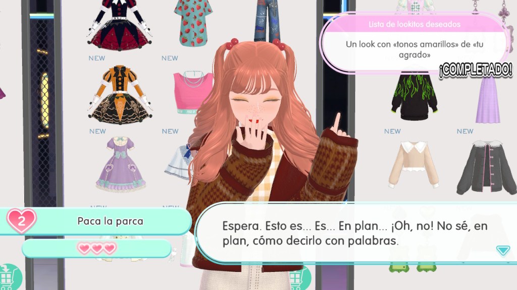 Las piezas de ropa son taaaan bonitas. Realmente todo el juego es súper mono, tanto los escenarios como los personajes y peinados. Sin embargo, las decisiones de diseño sobre ellas son absurdas. Por ejemplo: